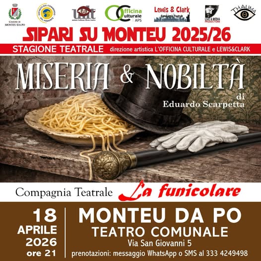 La nuova stagione teatrale “Sipari su Monteu 2025/26”, è realizzata con la direzione artistica di Officina Culturale APS e Lewis&Clark, e in collaborazione con il Distretto del Commercio “Collina Monferrato Torinese”.