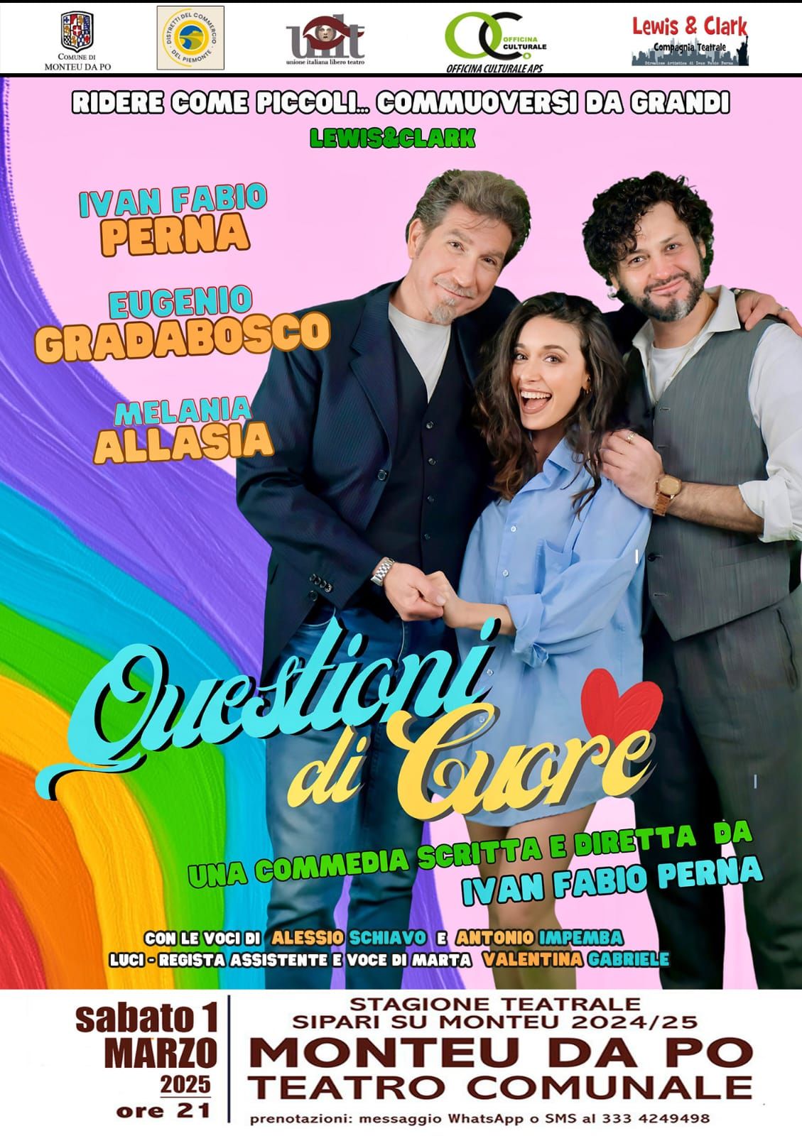 Lo spettacolo "Questioni di Cuore", inizialmente previsto al 28 febbraio, è spostato al 1 marzo 2025 sempre alle ore 21.
