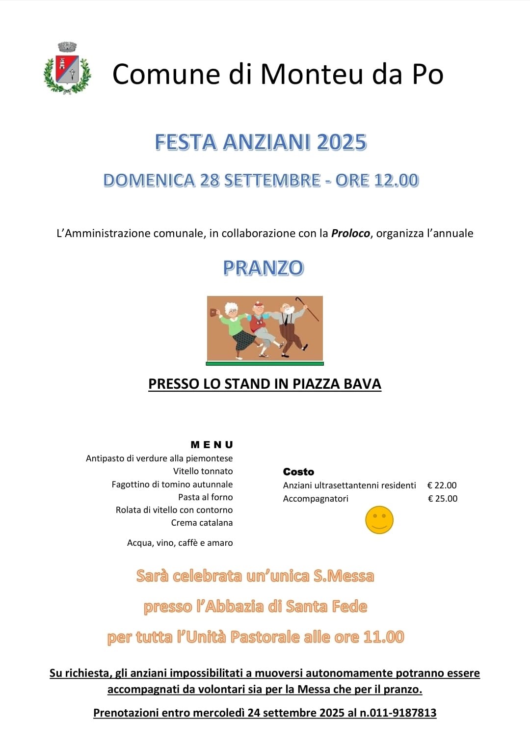 Prenotazioni entro mercoledì 24 settembre 2025 al n. 011-9187813.