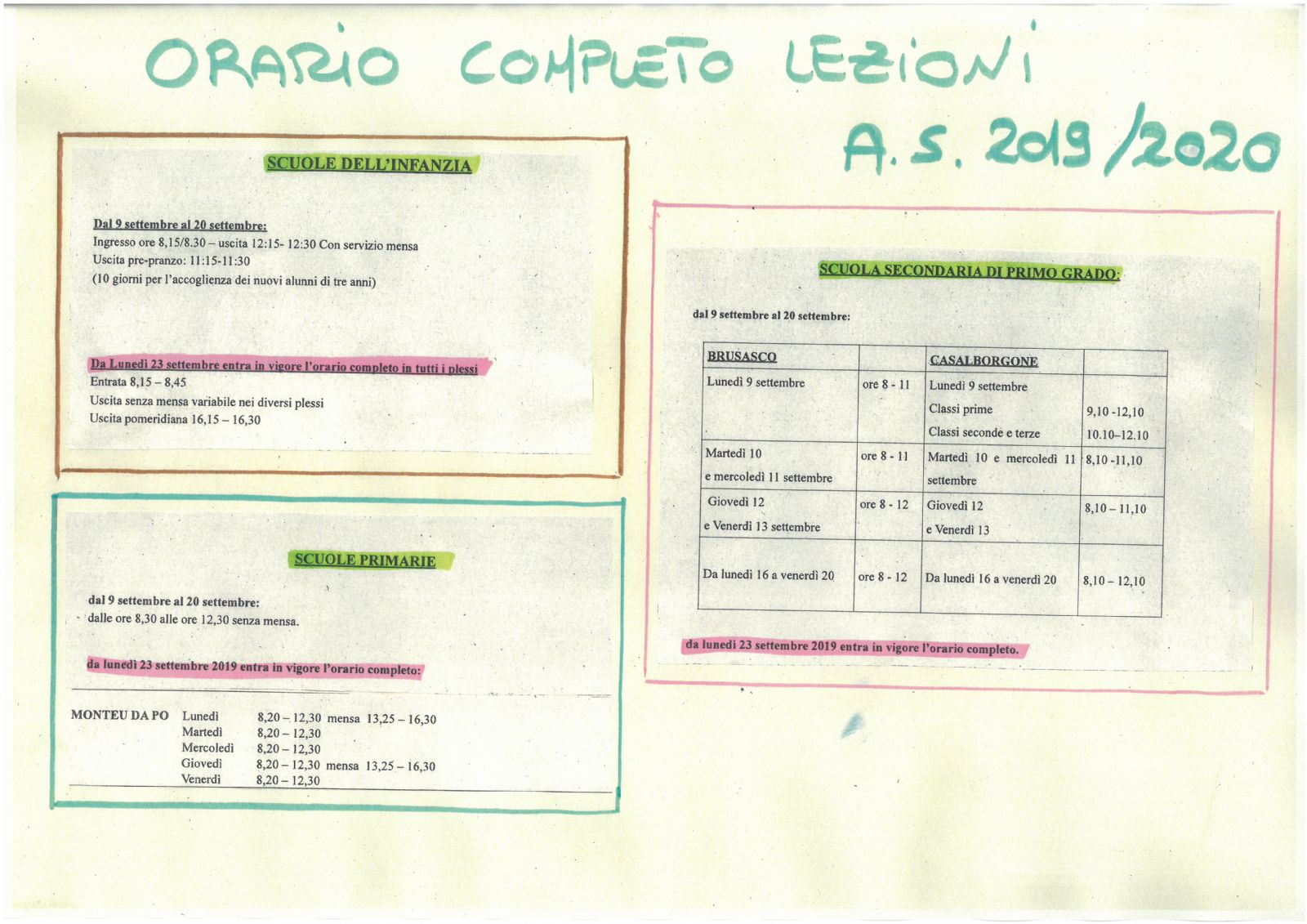 In allegato il calendario A.S. 2019/2020 e orari provvisorio e definitivo