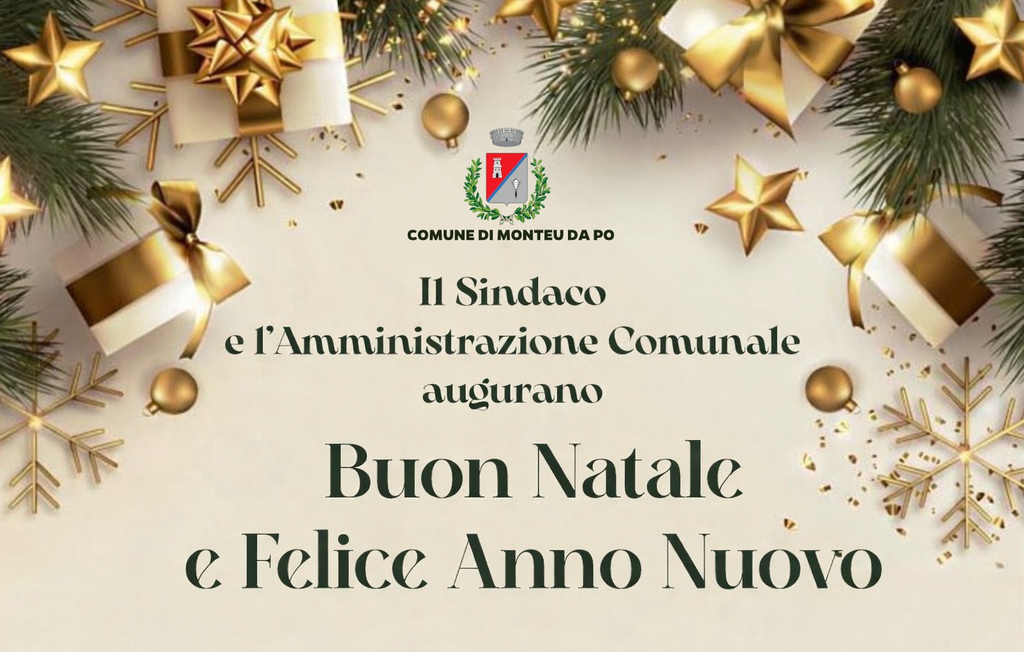 Il Sindaco e l’Amministrazione Comunale di Monteu da Po rivolgono a tutta la comunità i più sentiti auguri di Buon Natale e Felice Anno Nuovo.