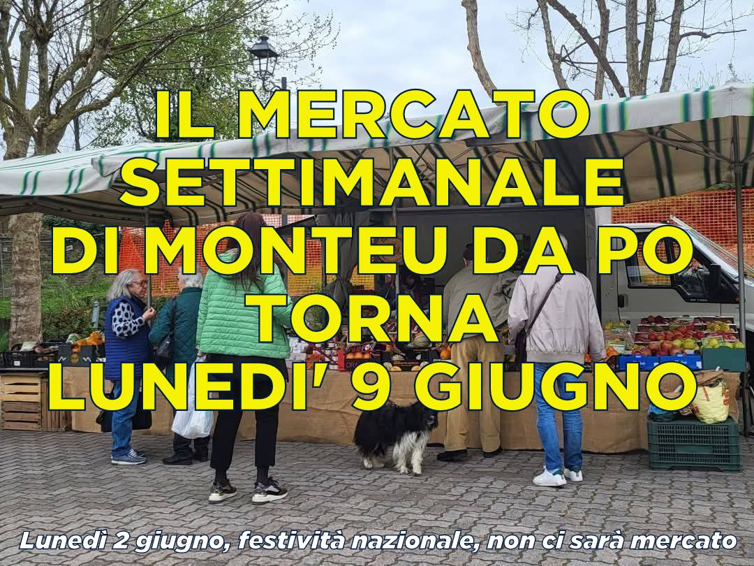 Il mercato settimanale di Monteu da Po torna, regolarmente, lunedì 9 giugno.