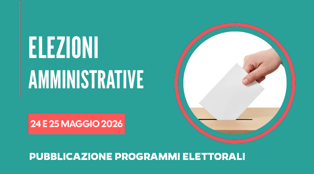 Sono pubblicati all’Albo Pretorio Online e in questa pagina i programmi elettorali delle liste che concorrono alle elezioni per il rinnovo del Consiglio Comunale e per l’elezione diretta del Sindaco di domenica 24 e lunedì 25 maggio 2026 come previsto dal Decreto Legislativo 18 agosto 2000, n. 267 (art. 73, comma 2).