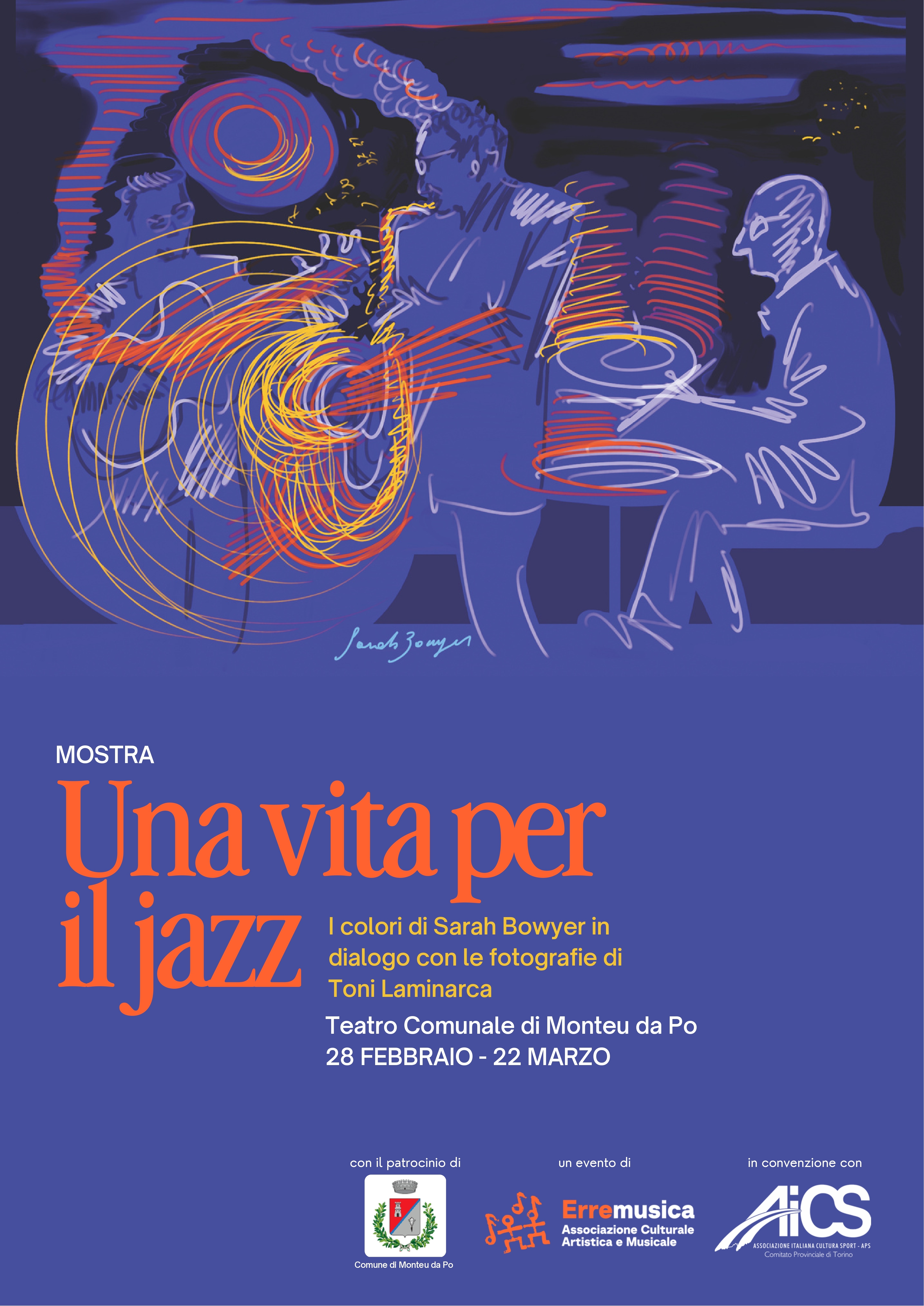 Dal 28 febbraio al 22 marzo il Teatro Comunale di Monteu da Po ospita “Una vita per il jazz”, mostra promossa da ErreMusica A.P.S. con il patrocinio del Comune di Monteu da Po, in collaborazione con AiCS Comitato Provinciale di Torino.